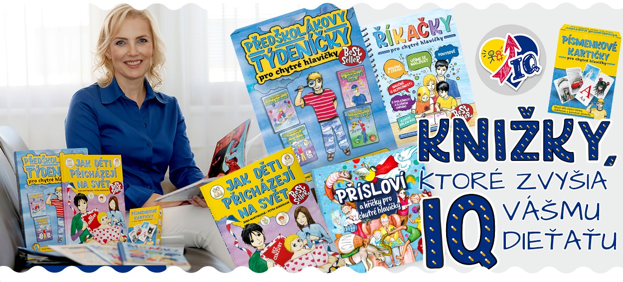 Práve vyšla unikátna detská kniha, vďaka ktorej sa vaše dieťa naučí múdrosti bez toho, aby postrehlo, že sa učí. Kniha Príslovia a slovné hračky pre chytré hlavičky obsahuje 50 OBRÁZKOV, RIEKANIEK a slovne vysvetlených PRÍSLOVÍ. Pri každom prísloví je tiež priestor pre vlastný obrázok dieťaťa.